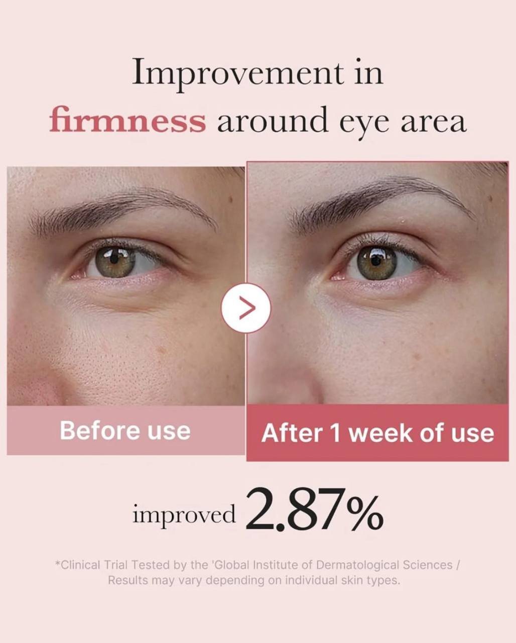 حسّن تماسك منطقة العين بنسبة 2.87%، وترطيبها بنسبة 22.5% بعد أسبوع واحد من الاستخدام.