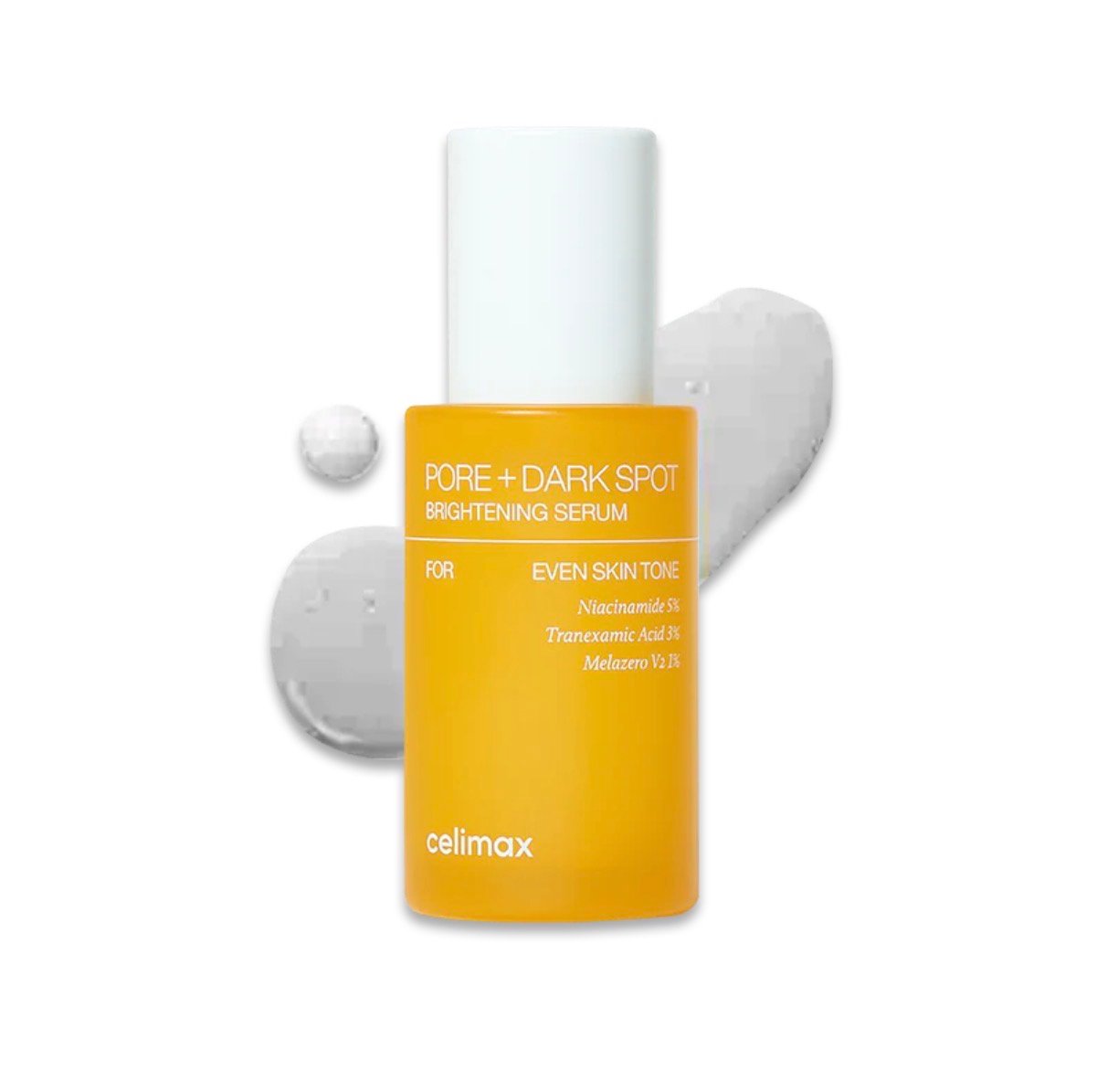 - تفتيح البشرة: يحتوي على مزيج من المكونات الفعالة مثل 5% نياسيناميد و 3% حمض الترانيكساميك و1% مركب Melazero V2 المسجل ببراءة اختراع، والتي تعمل معًا على تثبيط إنتاج الميلانين وتحلله، مما يساعد على تفتيح لون البشرة غير المتساوي.
