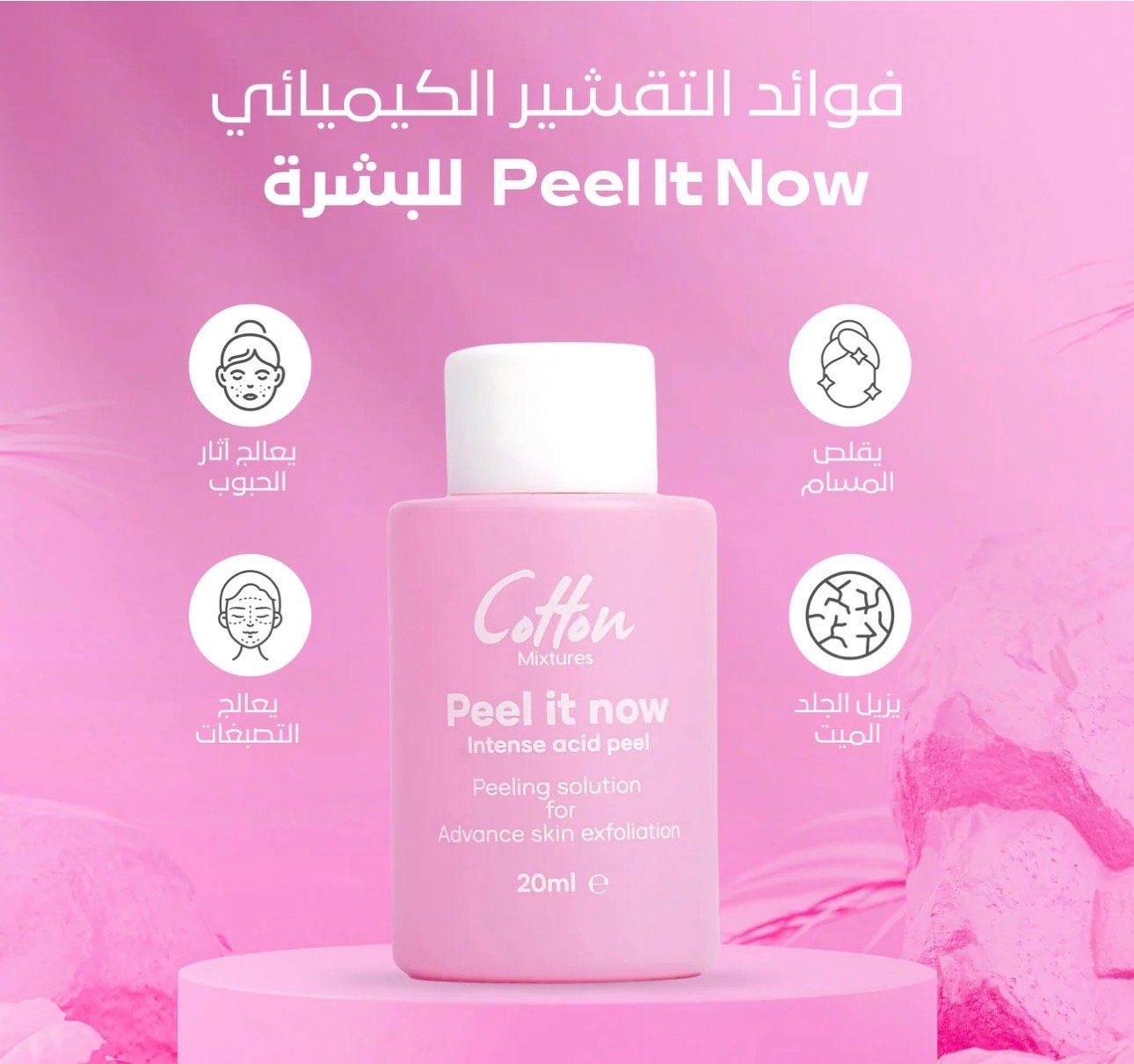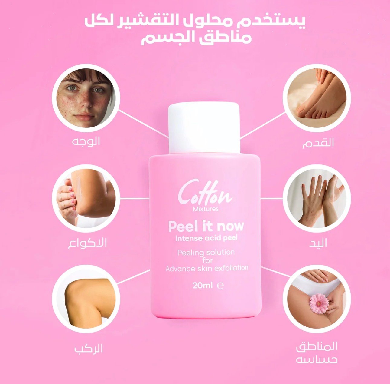 محلول التقشير الكيميائي peelitnow هو خليط من احماض حره نقية بتراكيز قليلة
