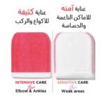 وجانب أحمر لتقشير مكثف للمرفقين والكاحلين، مصمم لإزالة خلايا الجلد الميتة القديمة.